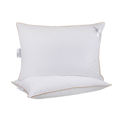 В наполнении подушки использован гусиный английский пух Class 1, обладающий хорошей гигроскопичностью, поэтому изделие прекрасно впитывает лишнюю влагу и испаряет ее в течение дня. Особенностью Goose 70/30 является техника наполнения — это двухкамерная подушка с разным соотношением пуха и пера. Нижняя камера составляет 30% пуха и 70% пера, верхняя – 70% пух и 30% перо. Такая техника наполнения позволяет менять стороны подушки с более мягкой на более упругую, согласно Вашим потребностям и предпочтениям для сна. Мягкая сторона с большим процентом пуха, а более упругая - с большим количеством пера.